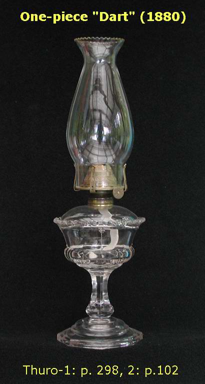 This is a wonderful one-piece pattern lamp known as Dart, made in the 1880's. It is virutally flawless with no chips, scratches or cracks.