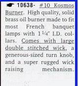 These are imported from Europe. The Kosmos burner is the burner of choice for most lamps made in