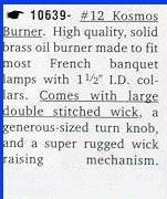 ![]() KOSMOS #14 Burner with wick Out of stock; awaiting long overdue shipment from Gaudard,but do have two nickel plated British-made in stock.