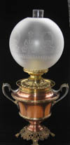 Turn-of-the-century PRINCESS FEATHER large glass oil lamp: